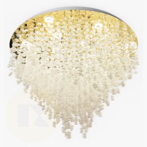 لوستر تیغه ای طلایی قطر ۴۰ با کریستالی قندیل و گوی