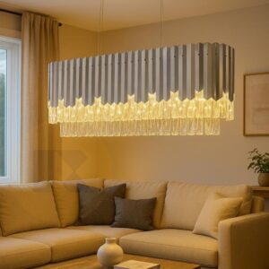 لوستر لاینر تیغه ای نقره ای 80*30 با کریستال کلیپسی سفید