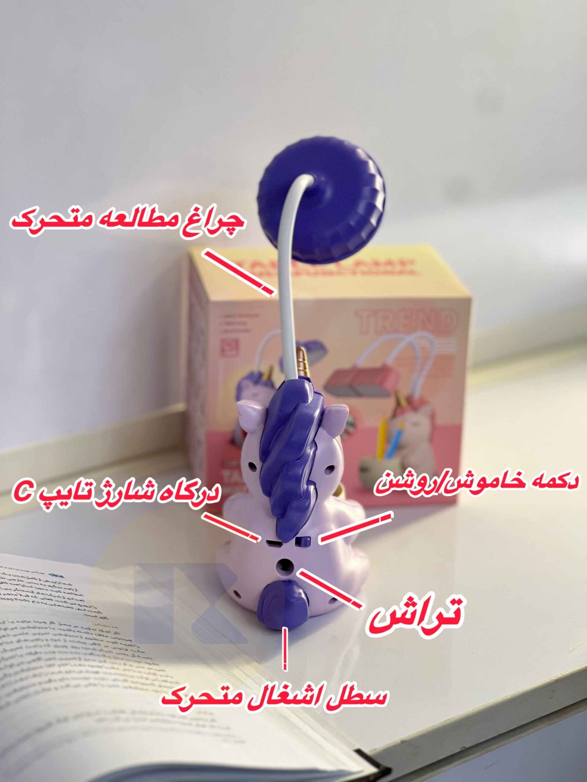 •کاربری:چراغ مطالعه + جای لوازمالتحریر + تراش رومیزی