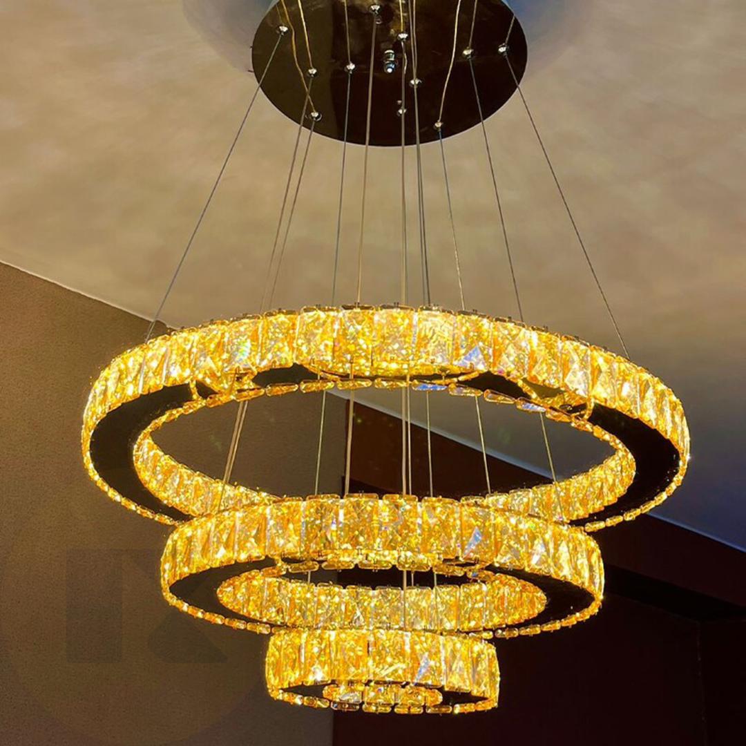 لوستر لیزری دایره 3 طبقه با کریستال شامپاینی نور 3 حالته