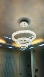 لوستر لیزری دایره 3 طبقه با کریستال سفید نور 3 حالته